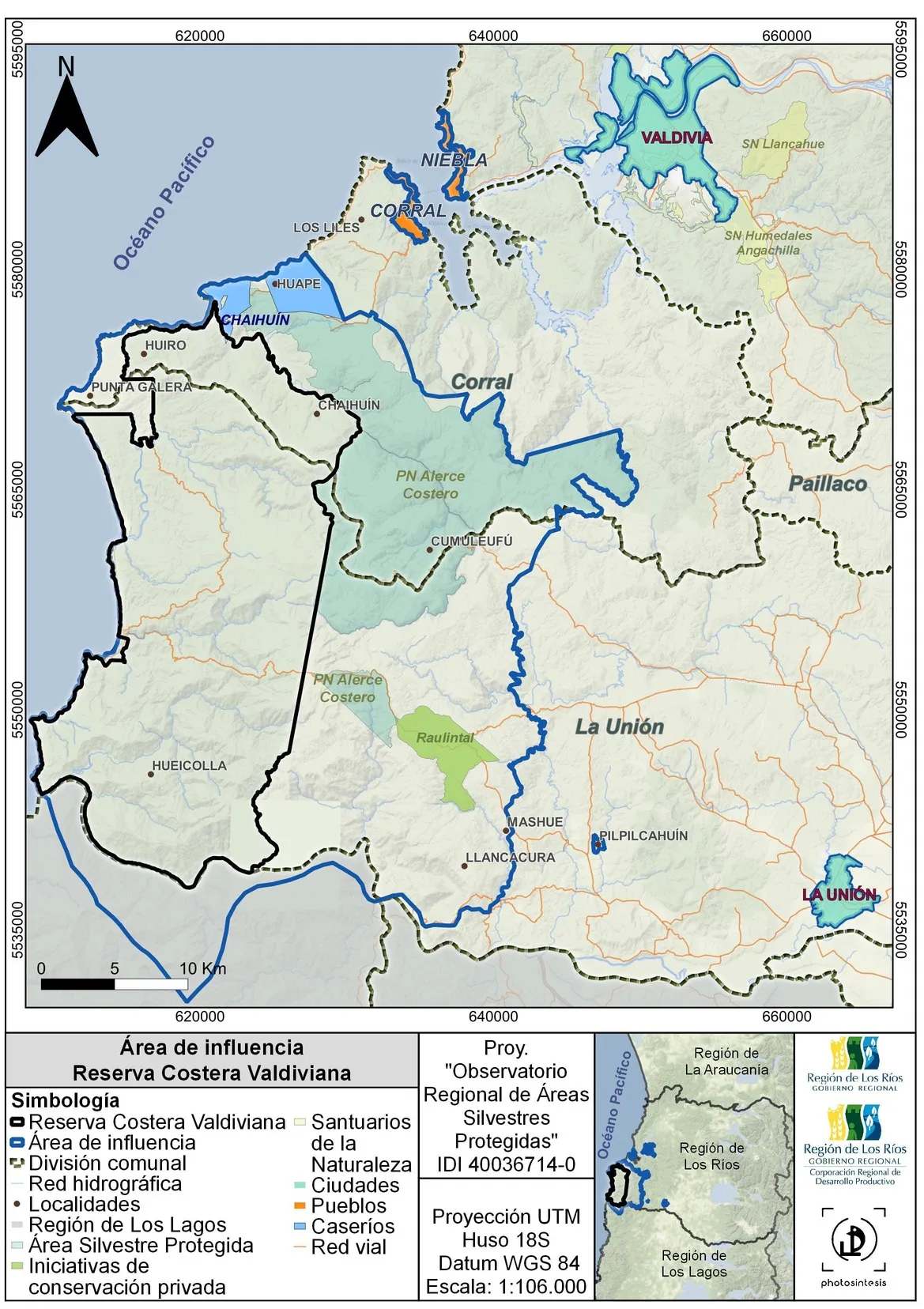 La superficie del SNASPE de la Región de Los Ríos alcanza las 126.570 hectáreas, correspondiente al 6,87% de la superficie regional (INE, 2010), de las cuales aproximadamente el 48% corresponde a bosque nativo, en donde el bosque templado lluvioso destaca por su singularidad e importancia para la conservación de la biodiversidad a nivel global.