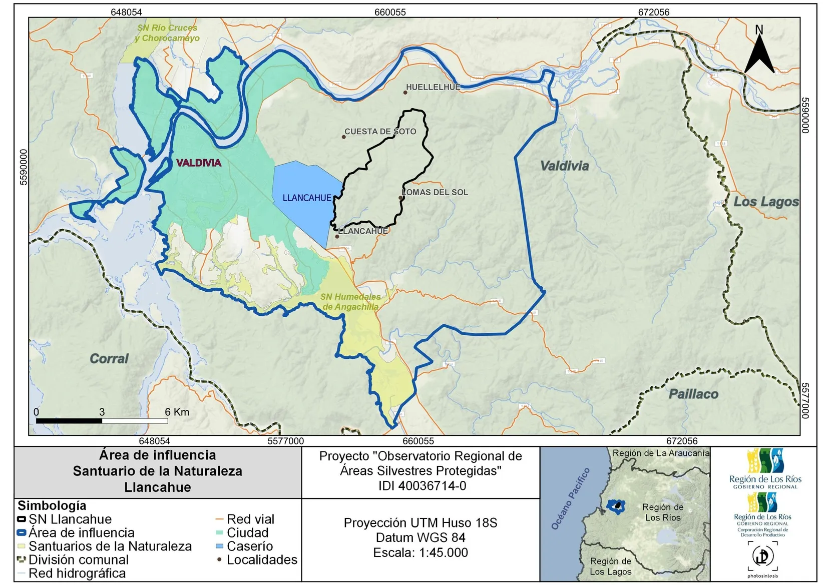 El Santuario de la Naturaleza Llancahue se encuentra en la región de Los Ríos, en la comuna de Valdivia a 14 km de la ciudad. Se accede al SN por la ruta Valdivia-Paillaco, por Aguas Décimas o por el sector El Rodeo (Centro de Estudios Agrarios y Ambientales CEA). El Santuario fue creado el año 2021 (Decreto 29), su superficie oficial es de 1.277 hectáreas y superficie calculada de 1.273,9 hectáreas (MMA, 2023). Su administración está a cargo del Ministerio de Bienes Nacionales.