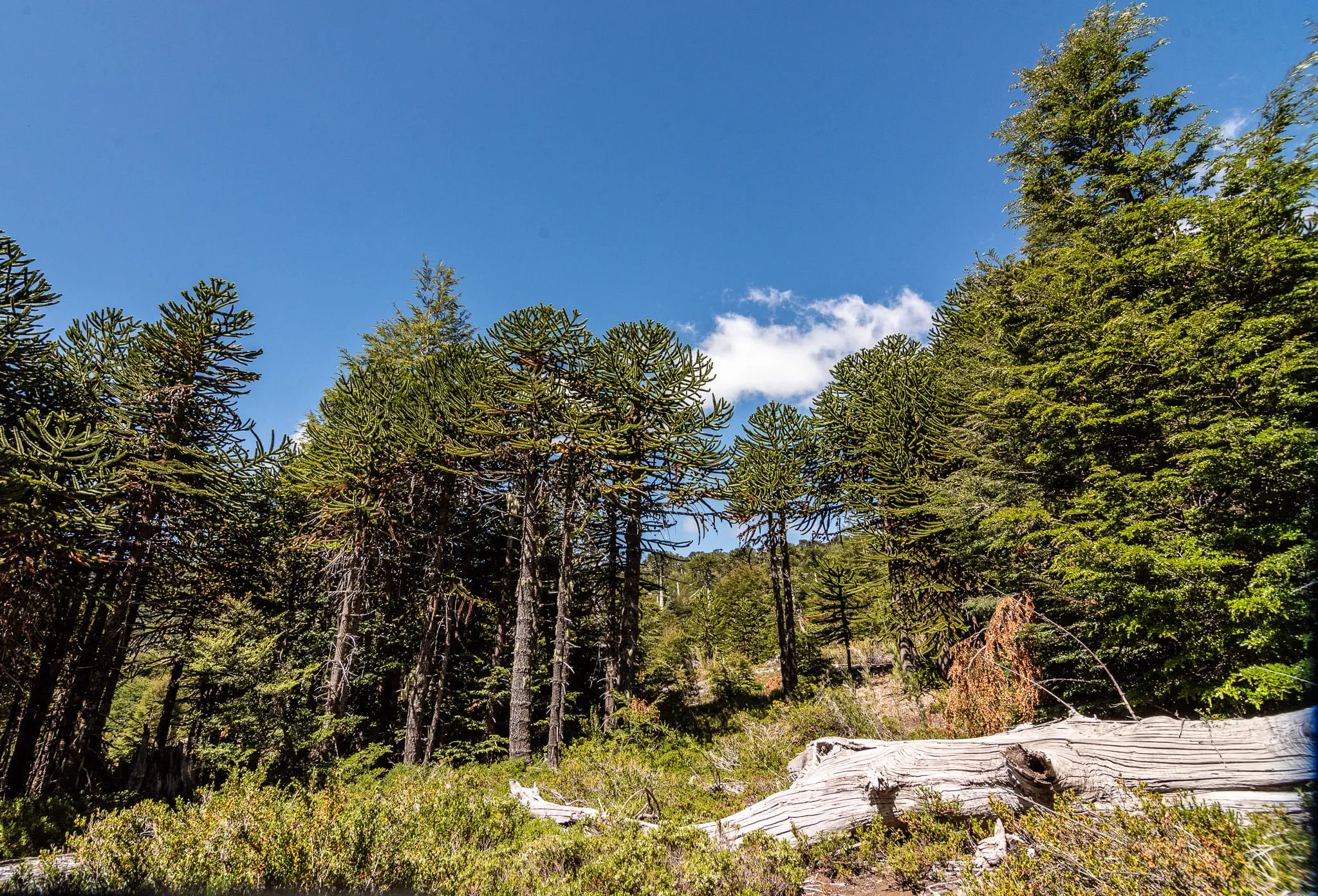 El área montañosa se caracteriza por un paisaje dominado por diversos tipos de bosques. En las zonas más bajas, se encuentran bosques de araucarias (Araucaria araucana), lengas (Nothofagus pumilio), raulíes (Nothofagus alpina) y coigües (Nothofagus dombeyi). En cuanto a la fauna, se destaca la presencia del monito del monte (Dromiciops gliroides), el coipo (Myocastor coypus), los zorros chilla y culpeo (Pseudalopex griseus y Pseudalopex culpaeus), el quique (Galictis cuja), el chingue (Conepatus chingue), el puma (Puma concolor) y los pudúes (Pudu puda). En cuanto a las aves acuáticas, se pueden encontrar especies como la huala (Podiceps major), el caiquén (Chloephaga picta), el pato real (Anas sibilatrix), el cortacorriente (Merganetta armata), el rinconero (Heteronetta atricapilla) y la tagua (Fulica sp.). Cabe destacar que una parte del Parque (sector sur) forma parte de la Reserva de la Biósfera Bosques Templados Lluviosos de Los Andes Australes (MMA, 2023).